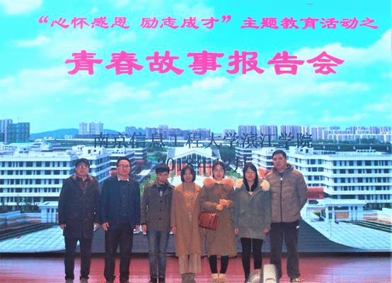2018年12月26日,“青春故事报告会”在我院无锡校区大礼堂举行,来自滨江学院南京校区的国家奖学金和国家励志奖学金获得者代表,分别作了四场精彩的报告。无锡校区全体家庭经济困难学生和各班学生干部代表聆听了报告。