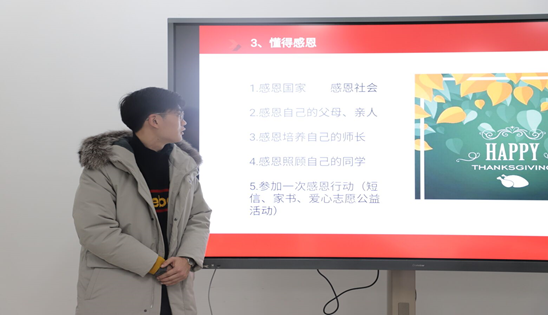 座谈会最后由李佳熙老师对同学们进行了“励志守初心感恩新时代”的主题教育,李老师从爱国爱校、励志勤学、懂得感恩、回报社会这四个方面展开,他号召与会同学要树立正确的人生观和价值观,心怀感恩、诚实守信、励志成才、践行梦想、服务社会,在实现个人价值的的同时努力回报社会!