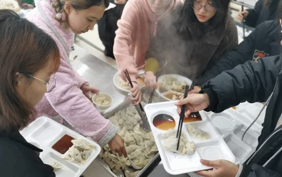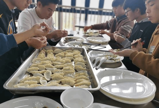 活动当天,余润阳老师首先向同学们送上了简单的节日祝福,之后包饺子就正式开始了。地域的差异带来了包饺子方式的不同,有的用料十足,包出的饺子个大肚儿圆,彰显出北方的大气与豪爽;有的大小均匀,包出的饺子精致美观,呈现出南方的清秀与灵动。大家欢乐地交流,认真地操作,时而探讨心得,时而过招切磋。看着自己包的饺子,大家的脸上都洋溢着兴奋与自豪,有的拿着手机拍照、录像,有的趁机把面粉抹在别人脸上,餐厅充满了欢声笑语。经过不懈的努力,热气腾腾的饺子在大家的期待中被端上了餐桌,同学们抢着吃凝结了自己劳动的饺子,一边吃一边交谈,气氛非常活跃。