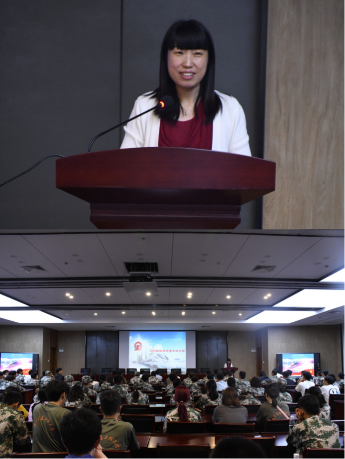 轨道交通学院副院长朱菊香老师分析了轨道交通专业发展的必要性以及专业的未来就业。她表示,学校具有踏实、朴实、务实的优秀传统学风,她希望大家提高个人素养,来到学校新起点要学会战胜自己,在大学四年,要把最强的正能量发挥出来,做未来做交通强国的践行者。