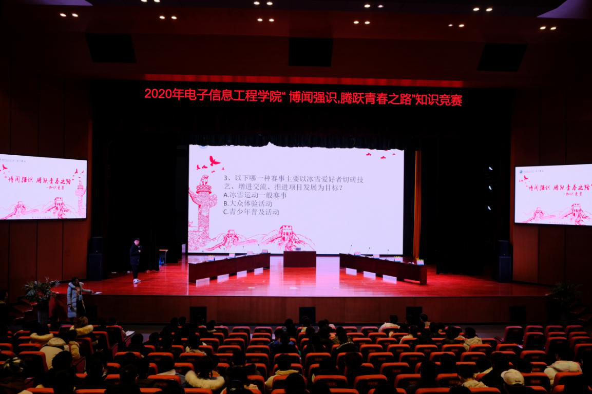 为进一步丰富学生课外知识,引导广大青年学生了解党史党章,12月16日,电子信息工程学院在滨江大礼堂开展了“博闻强识,腾跃青春之路”知识竞赛活动。