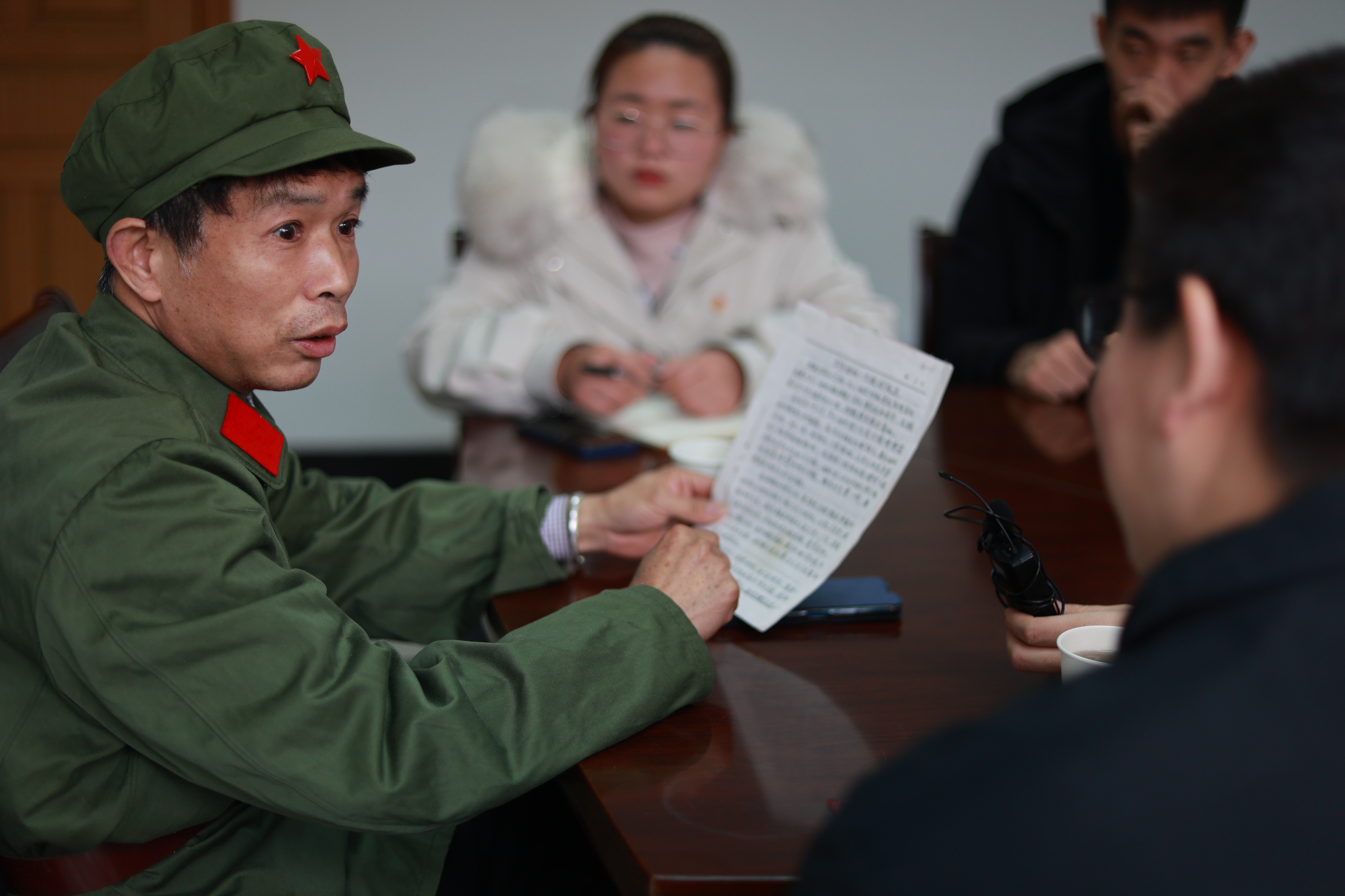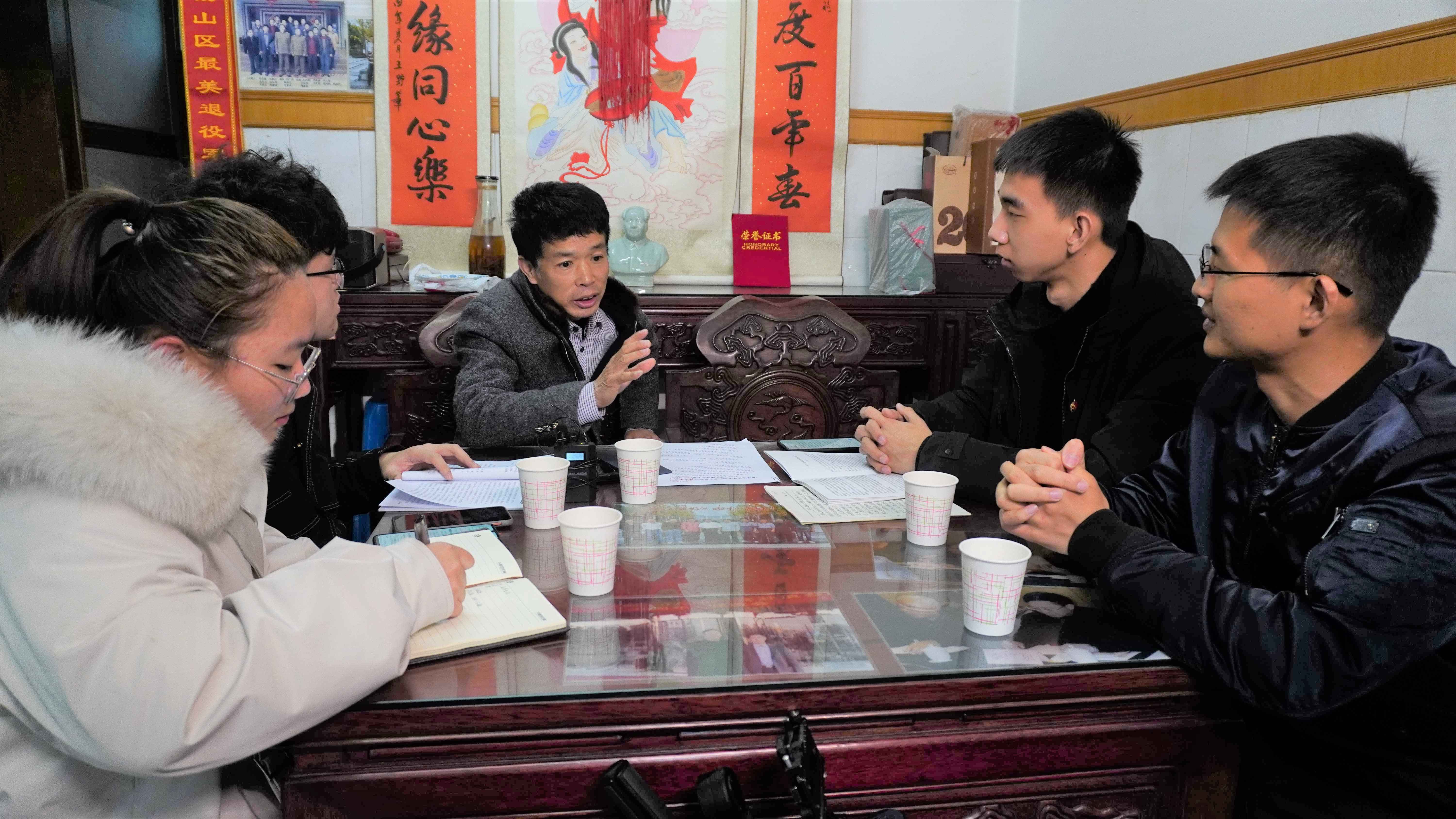图为团队成员在老兵家中进行采访
