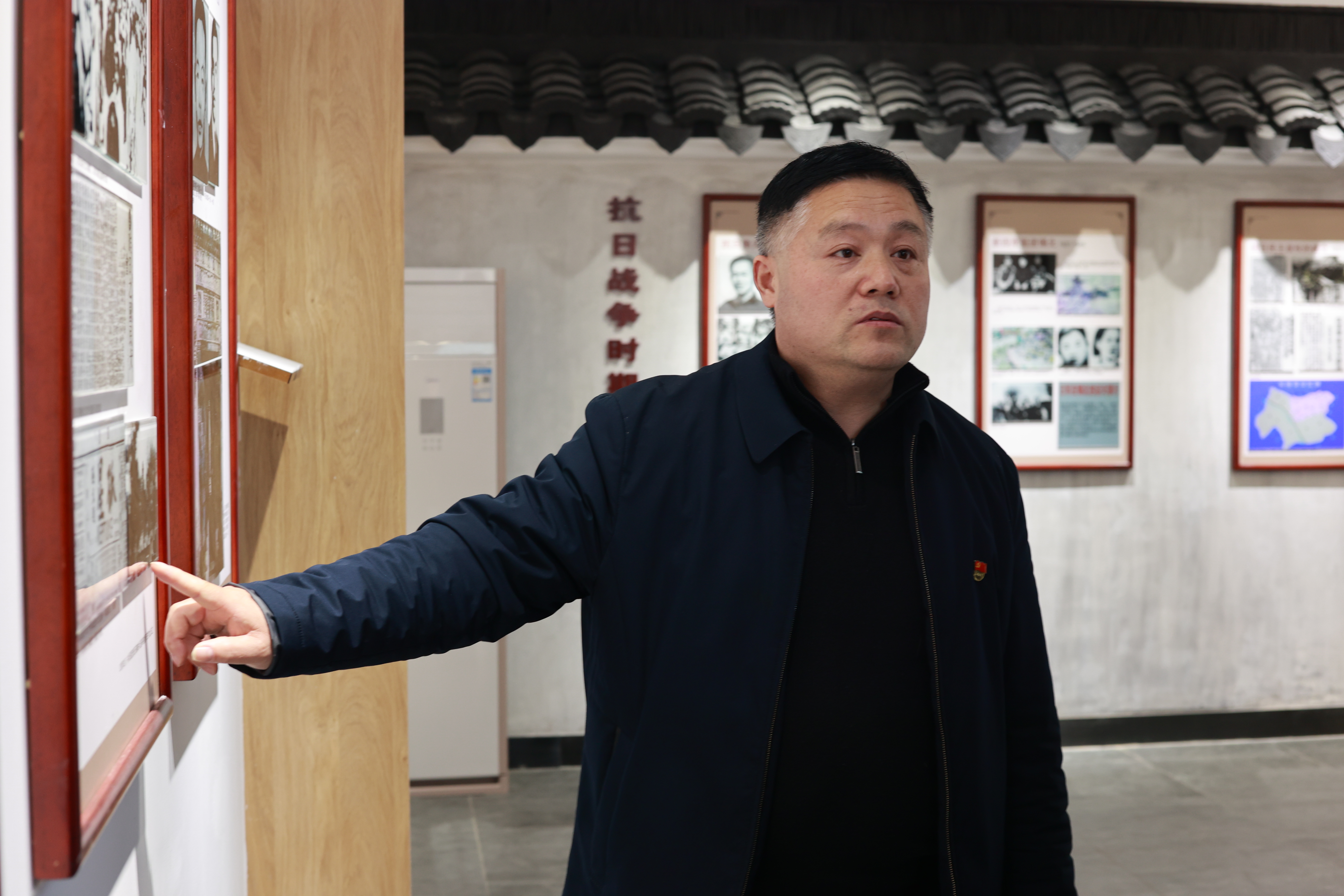 图为杨馆长向团队成员介绍纪念馆