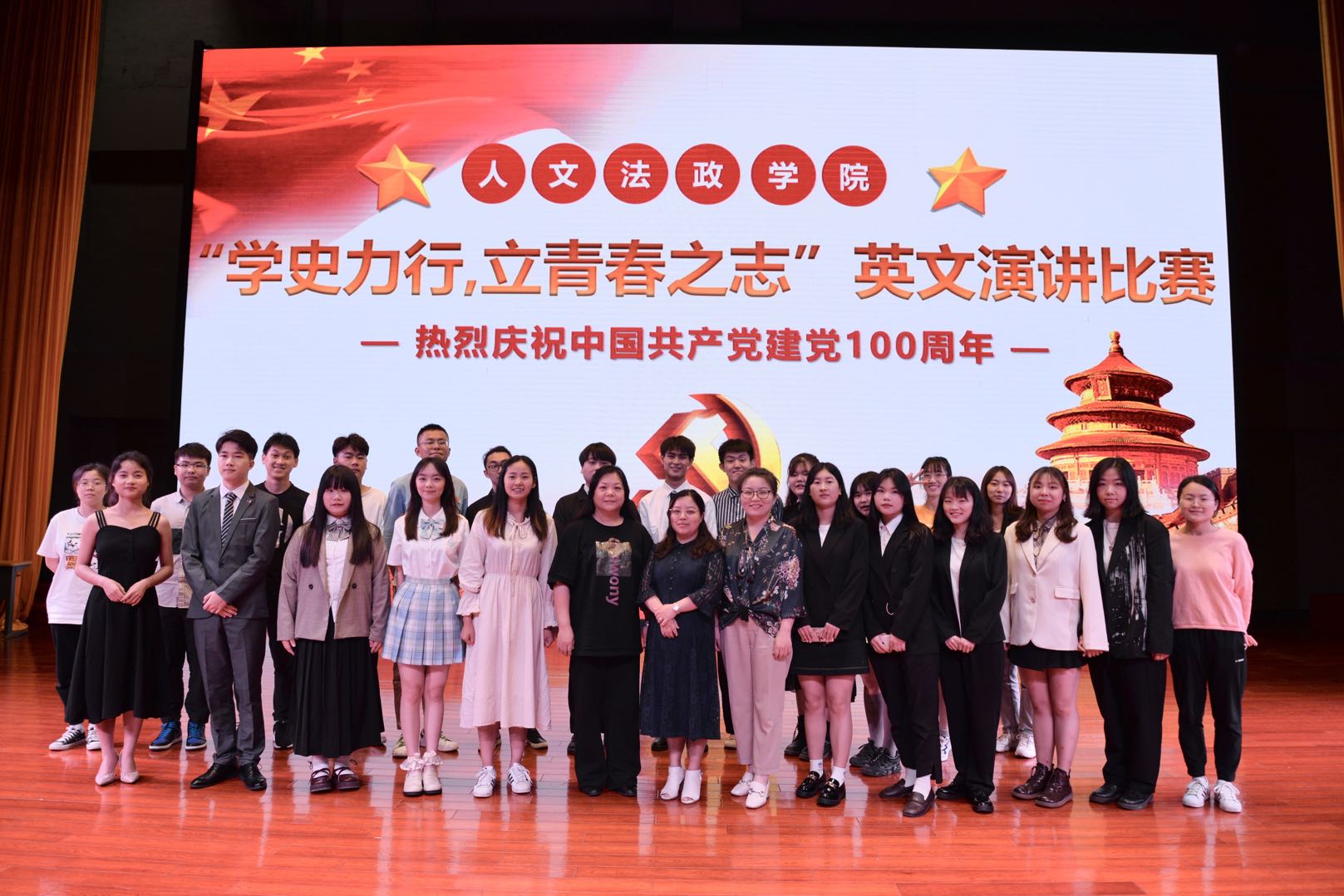 为庆祝党的百年华诞,纪念党的丰功伟绩,加强学生思想政治教育和党性修养,人文法政学院于6月2日在大礼堂二楼报告厅举办了“学史力行,立青春之志”英语演讲比赛决赛。人文法政学院副院长谭东峰、外语系主任赵岚老师、分团委书记王琳琳老师、教学秘书殷俊杰老师、18和19级辅导员滕兆梅老师出席本次活动并担任比赛评委,全院学生到场观看本次比赛。