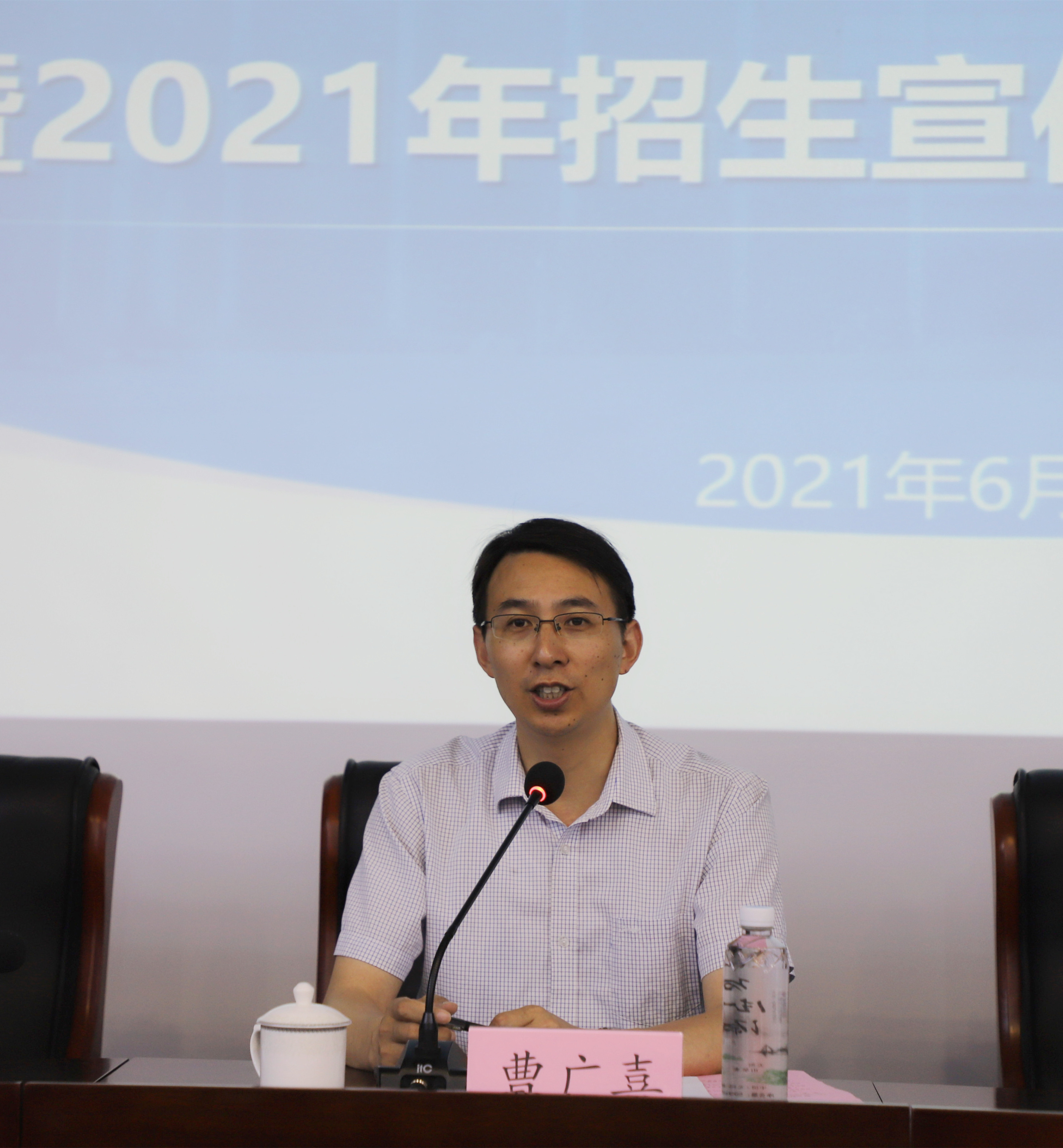 大会第二阶段,学生工作处副处长、团委书记李沛武作2021年招生宣传培训。他围绕江苏省新高考改革方案、学校招生政策、宣传纲要策略等方面作了专题解读。