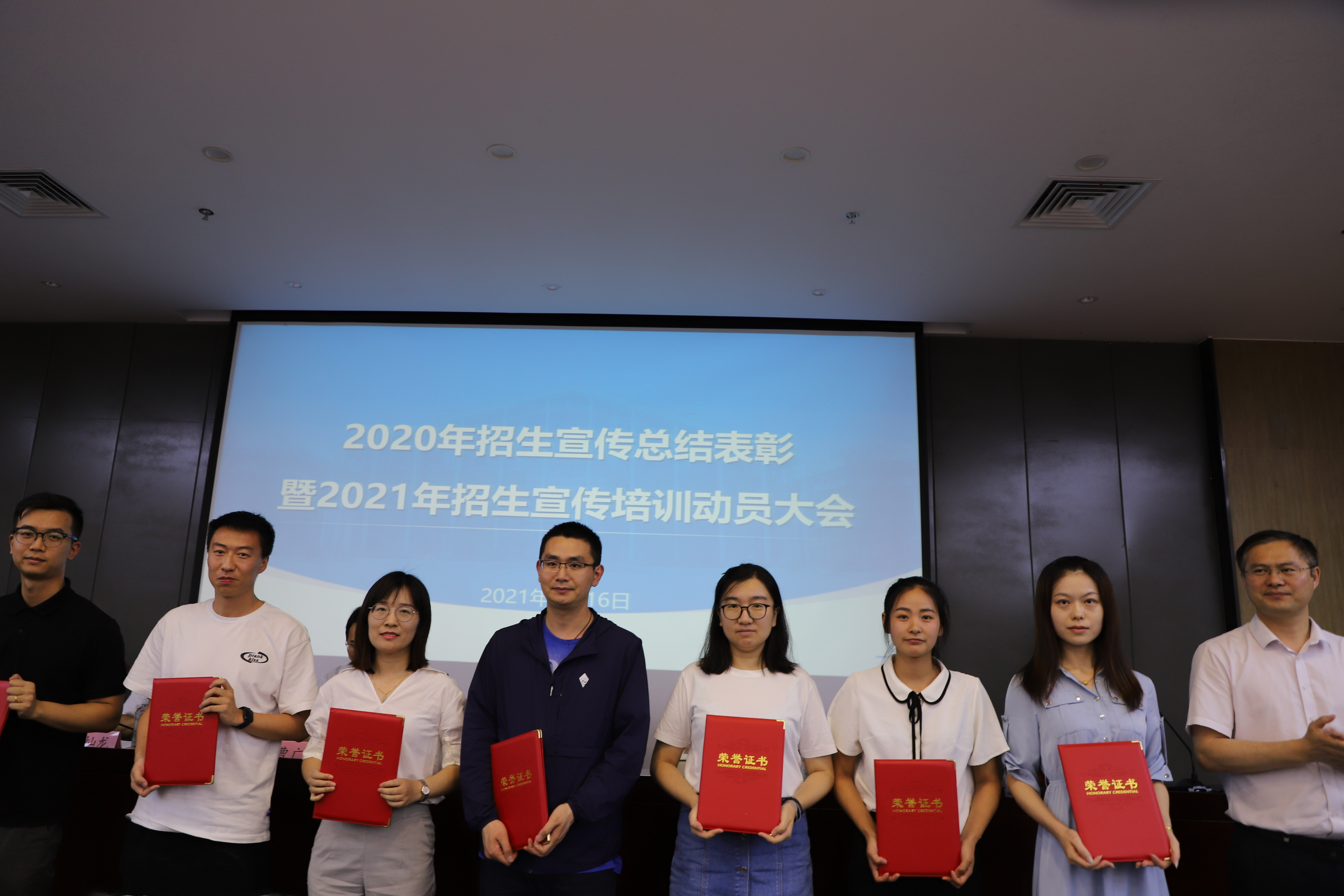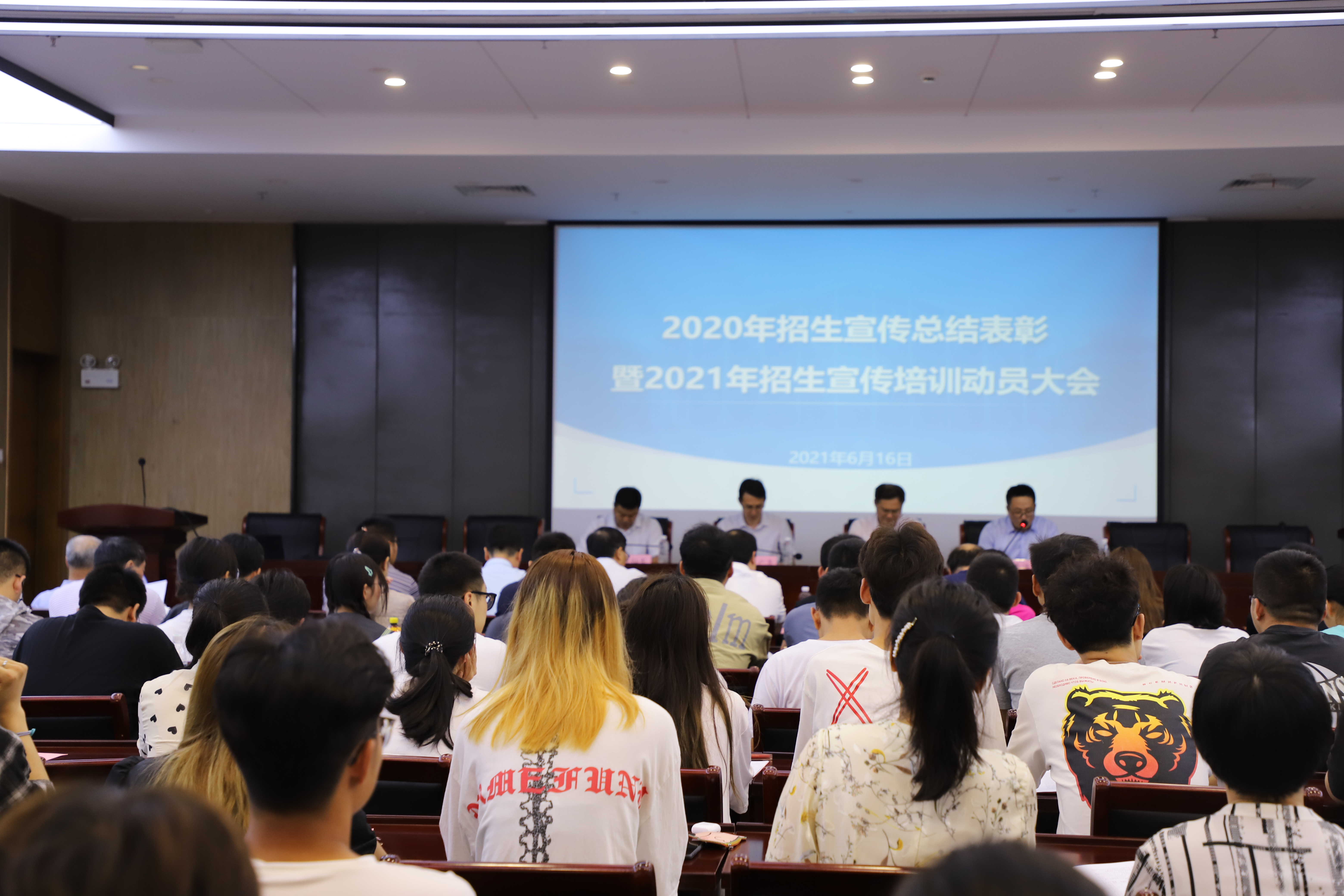6月16日下午,我院在大礼堂103会议室举行2020年招生宣传总结表彰暨2021年培训动员会。全体院领导出席本次会议,参与驻点招生宣传200余名师生参会。