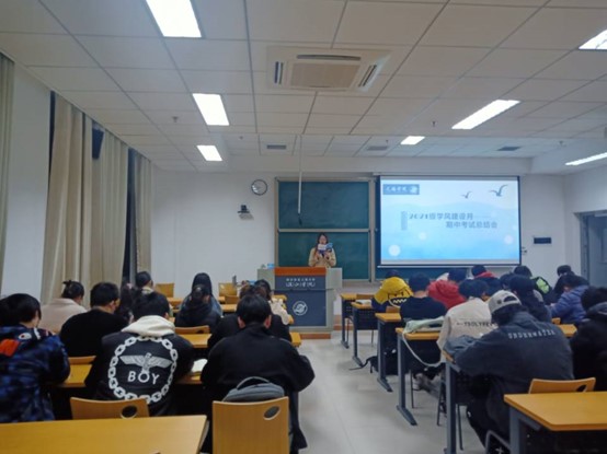 以班级为主体,将全方位育人作为学风建设的强力保障。为有效发挥班级主体作用和学生的主观能动性,各班级开展“学风建设主题月——期中考试总结”主题班会,各班对班级期中考试情况进行总结反思,邀请成绩优秀同学进行经验交流。同时,邀请班主任参与班会,为学生从专业角度介绍专业发展前景以及考研就业去向,为学生将来发展指明方向。学生、班主任、辅导员三方共同探讨班级学风建设方案,制定符合专业、班级实际的学风建设有效措施。