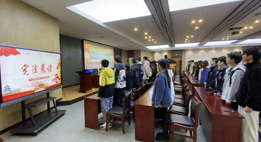 12月3日上午9点,物联网工程学院500名学生,参加教育部组织的“宪法晨读”活动,同学们在教育部党组成员、副部长宋德民的带领下,一起诵读宪法部分条款,学习宪法知识。从诵读中体会宪法温度、感受宪法力量。