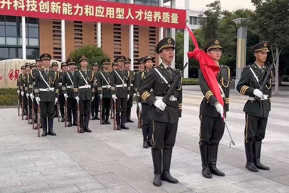 作为学校一支纪律严明,实行半军事化管理的特殊力量,国旗护卫队始终坚定不移地履行“担当型、服务型、创新型”的三大职能,深入宣传《国旗法》,致力于打造具有爱国主义教育特色的“锡院国护”校园文化品牌。