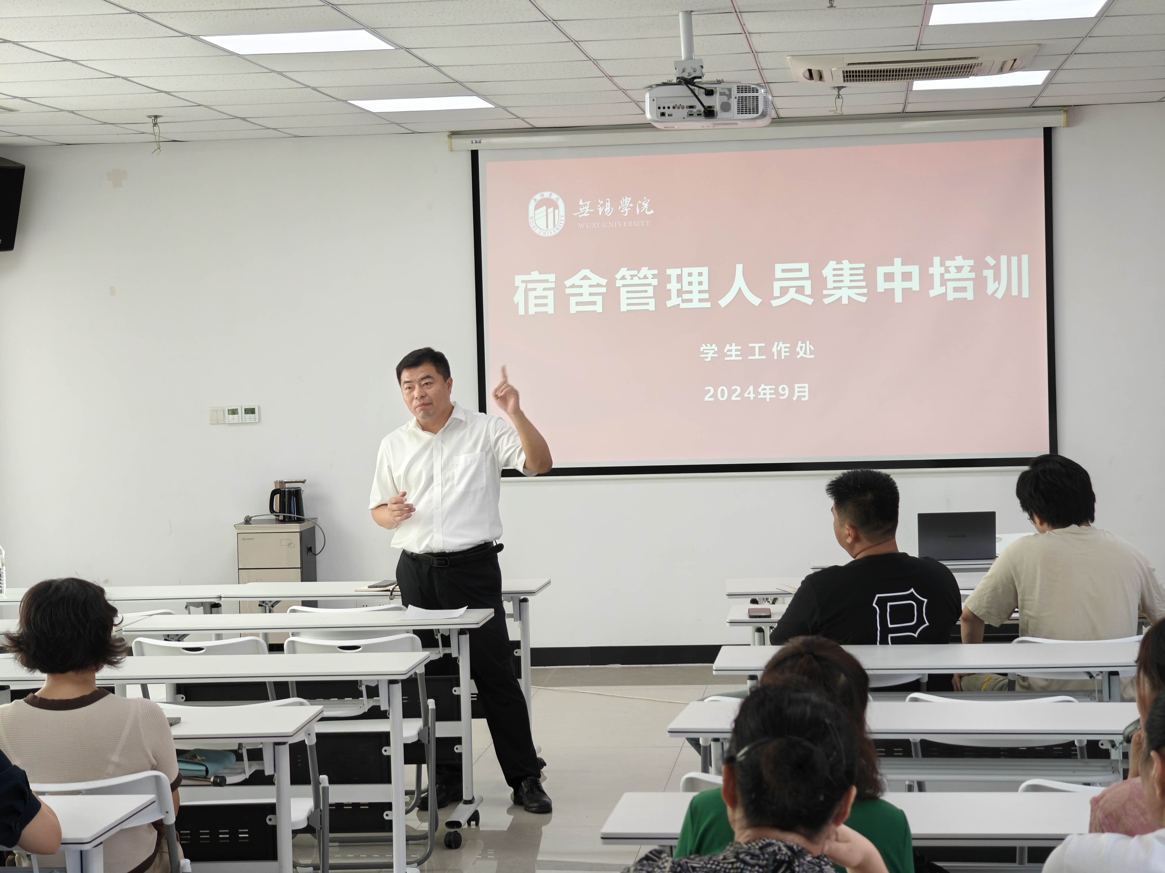 为进一步加强学生宿舍管理员队伍建设,全面提升宿舍管理水平,9月13日上午,学生工作处联合保卫处在学生活动中心403举办2024年秋季学期学生宿舍管理人员集中培训会,学生工作处负责人张灿龙、保卫处负责人陈翀及全体宿舍管理人员出席会议。
