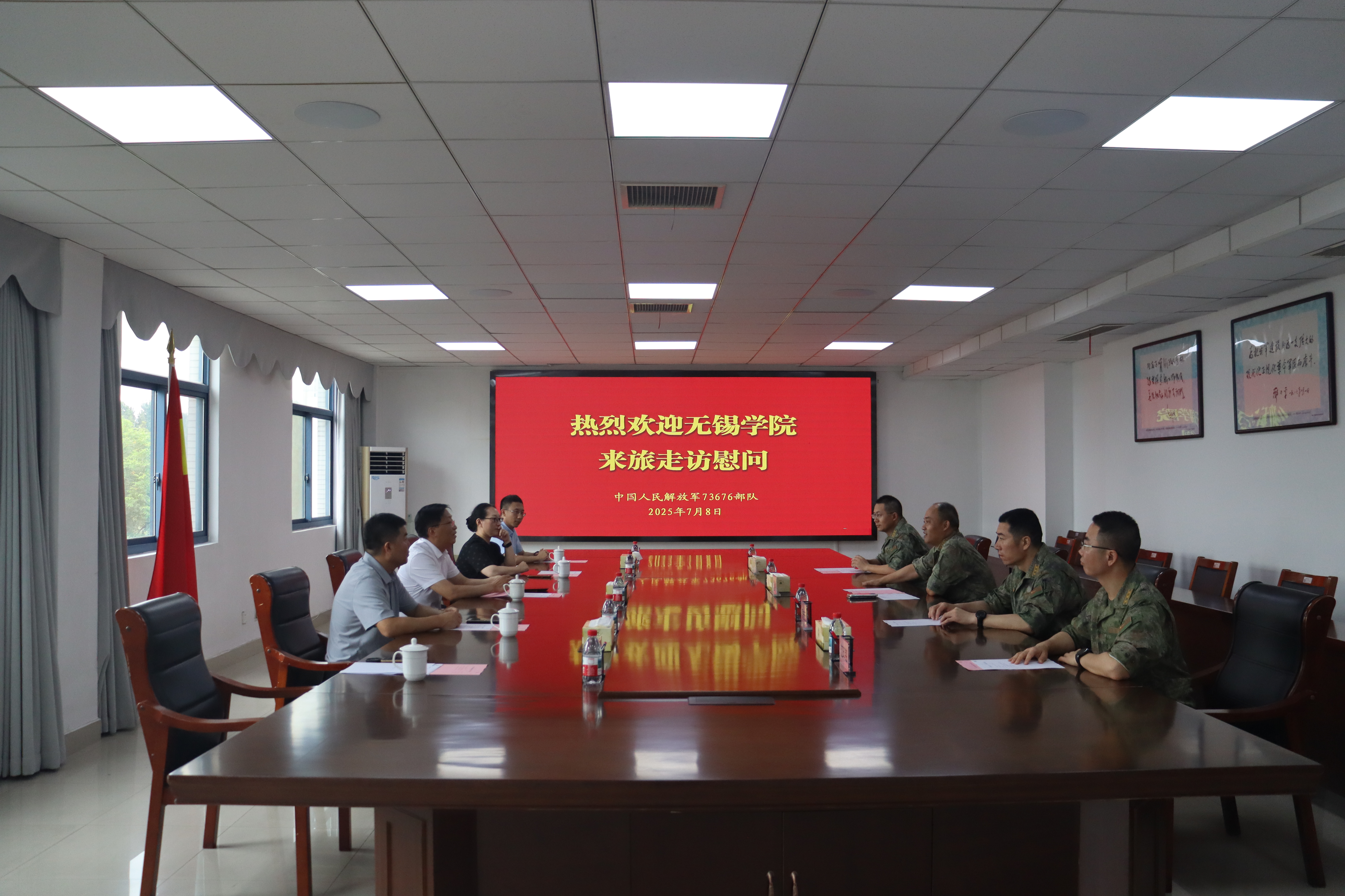 在“八一”建军节来临之际,7月8日上午,校党委书记张永宏,副校长梁惠娥率队前往中国人民解放军73676部队开展节日慰问活动,为部队官兵送去节日祝福与诚挚问候。学生工作处处长、人民武装部负责人等人员陪同慰问。