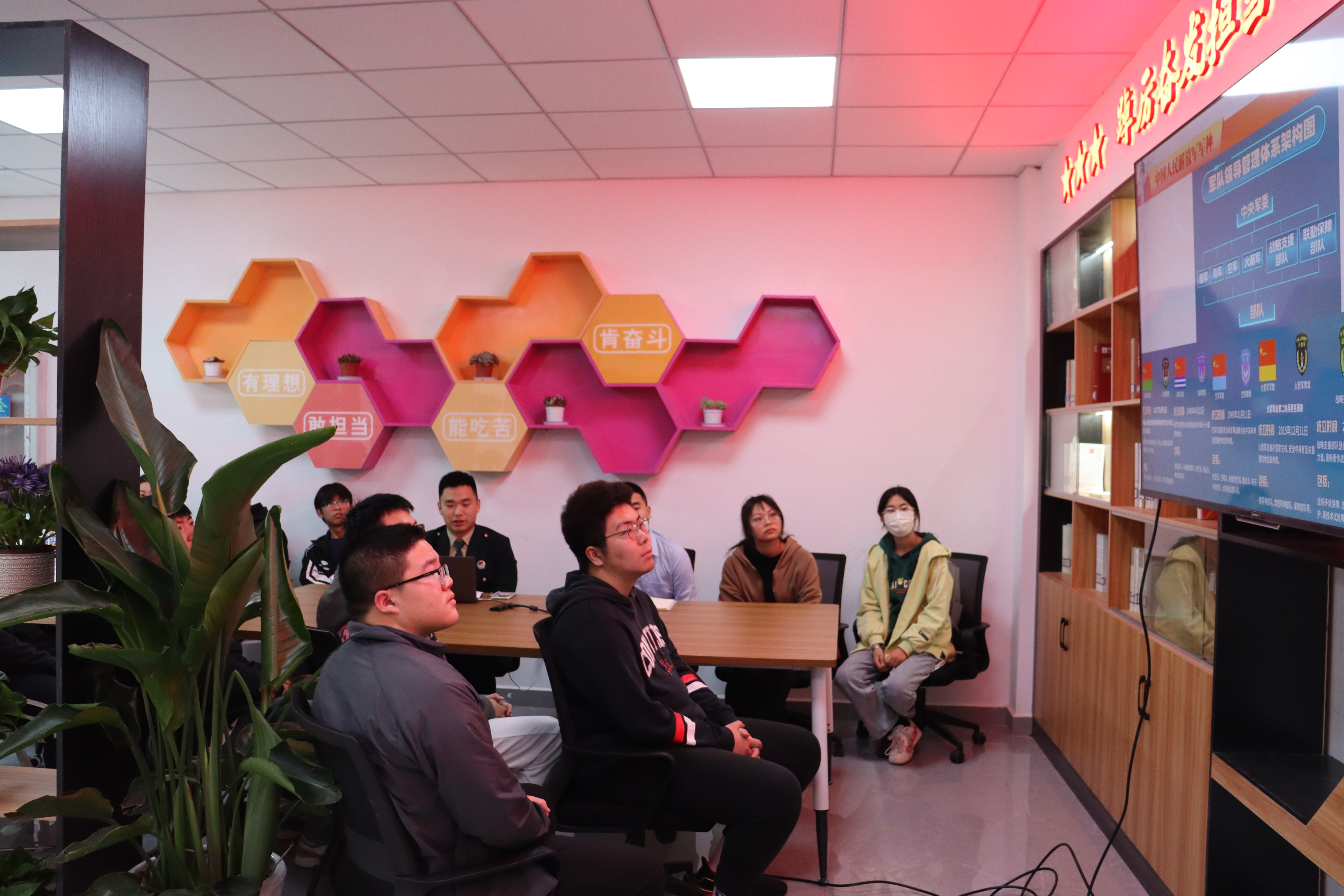 活动现场,杨凯同学以《踔厉奋发强国防,勇毅前行向复兴》为主题,从红色路线新媒体化、寻访记录老兵故事、青少年红色研学三个方面介绍了“红岩”退役军人志愿服务团队的系列志愿服务活动。同时结合自身参军经历和国家政策要求,详细解读了2024年征兵的基本条件、工作流程、优待政策和准备事项,号召有参军意向的同学们主动向学校武装工作联络员报名。