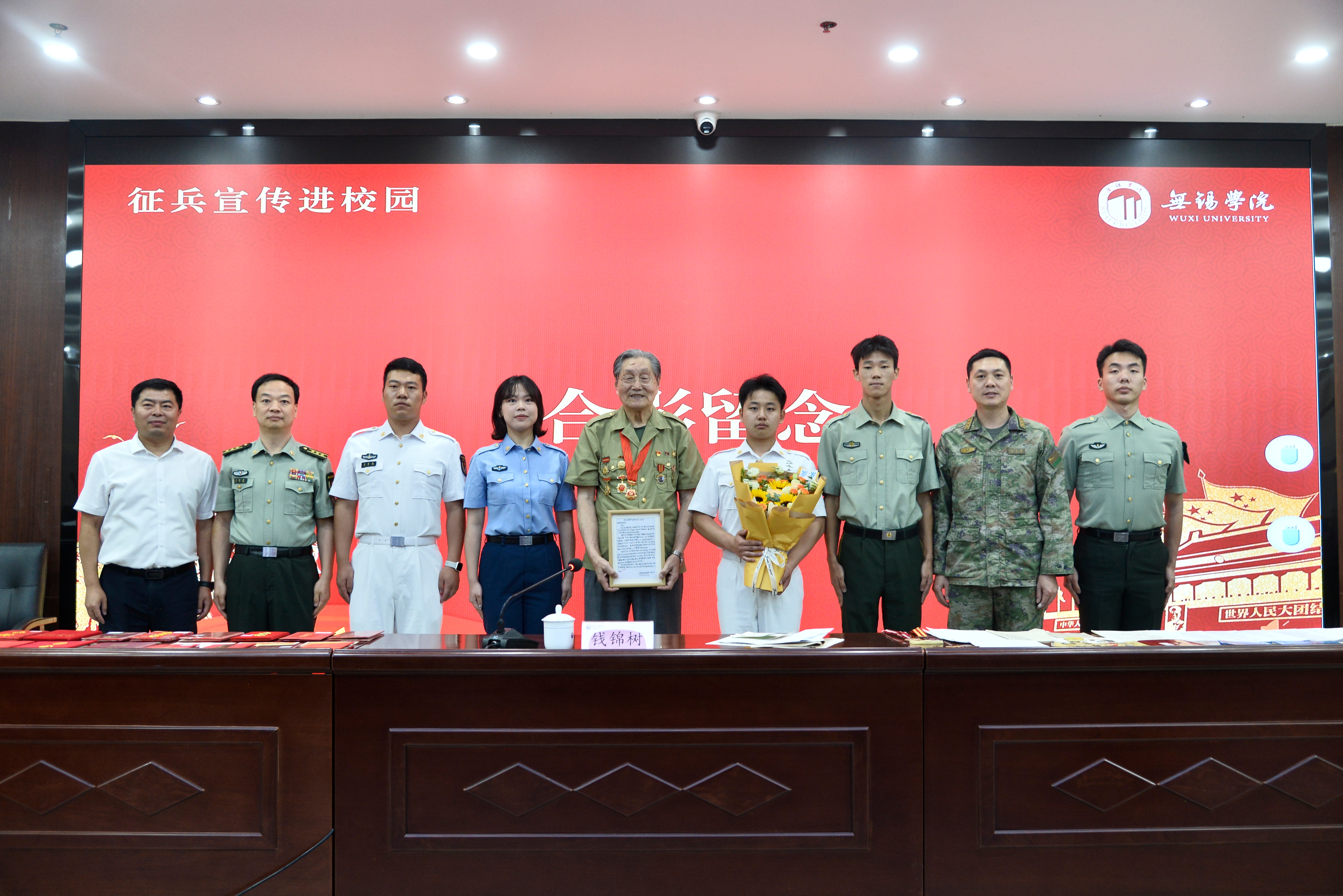 为进一步加深学生对征兵政策的了解,激发青年学子参军报国热情,6月4日下午,我校2025年“爱我国防”征兵宣讲暨老兵故事进校园活动在行政楼121报告厅成功举办。锡山区区委常委、人民武装部上校部长侯志刚,无锡市第二干休所上校政委周俊星,我校人民武装部部长张灿龙,副部长张明亮出席活动。我校退役大学生士兵代表、2025年秋季应征青年和意向入伍学生近150余人参加活动。我校特邀江苏省军区无锡第二干休所离休、首长干部钱锦树授课,讲座活动由张灿龙主持。