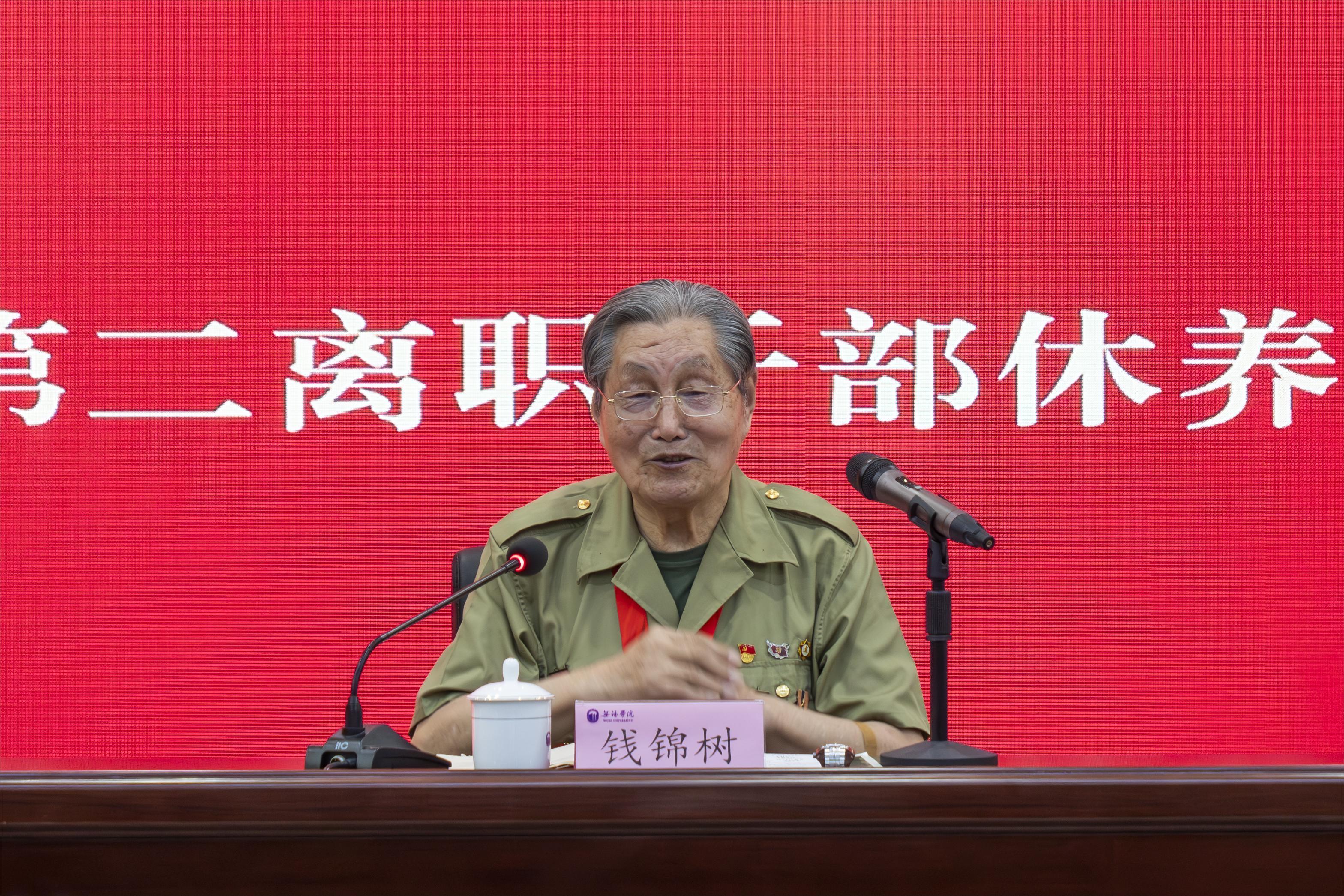 授课现场,94岁高龄的钱老首长怀揣着对下一代的深情关怀与殷切期待,以《好男儿就是要当兵》为题,结合自身经历讲述了淞沪会战期间百姓的流离失所和日本侵略的暴行,用生动的语言勾勒出一幅幅热血沸腾又满含坚守的画面,现场师生沉浸于其中。他寄语我校应征青年,要有以身许国的气概,要永远热爱自己的国家和民族,要在强国强军中贡献力量。退役军人代表孟姝彤、任金鹏向钱锦树敬献鲜花和手写信,一封手写信饱含锡院学子对革命前辈的崇高敬意和传承先辈精神的坚定信念。